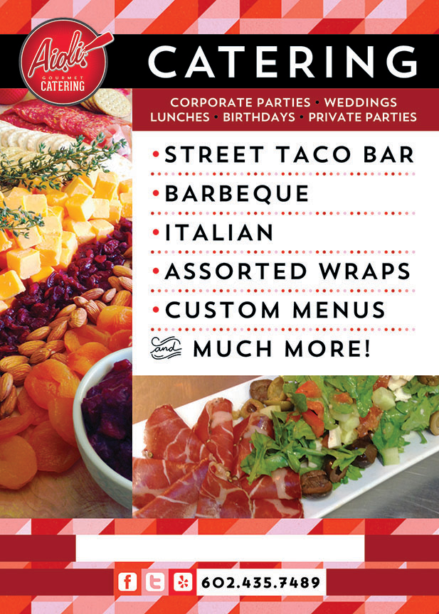 We are a Chef Owned and inspired business. Chef Tom’s passion for food and fine ingredients are what we strive to bring to your next meeting, special event or wedding. His fine dining experience, Culinary Institute of American and Greenbrier Apprenticeship graduations are what have given Aioli Gourmet Catering the skills to succeed. Let us cater your next event or call 602-526-5493 and we would be happy to set up a tasting.