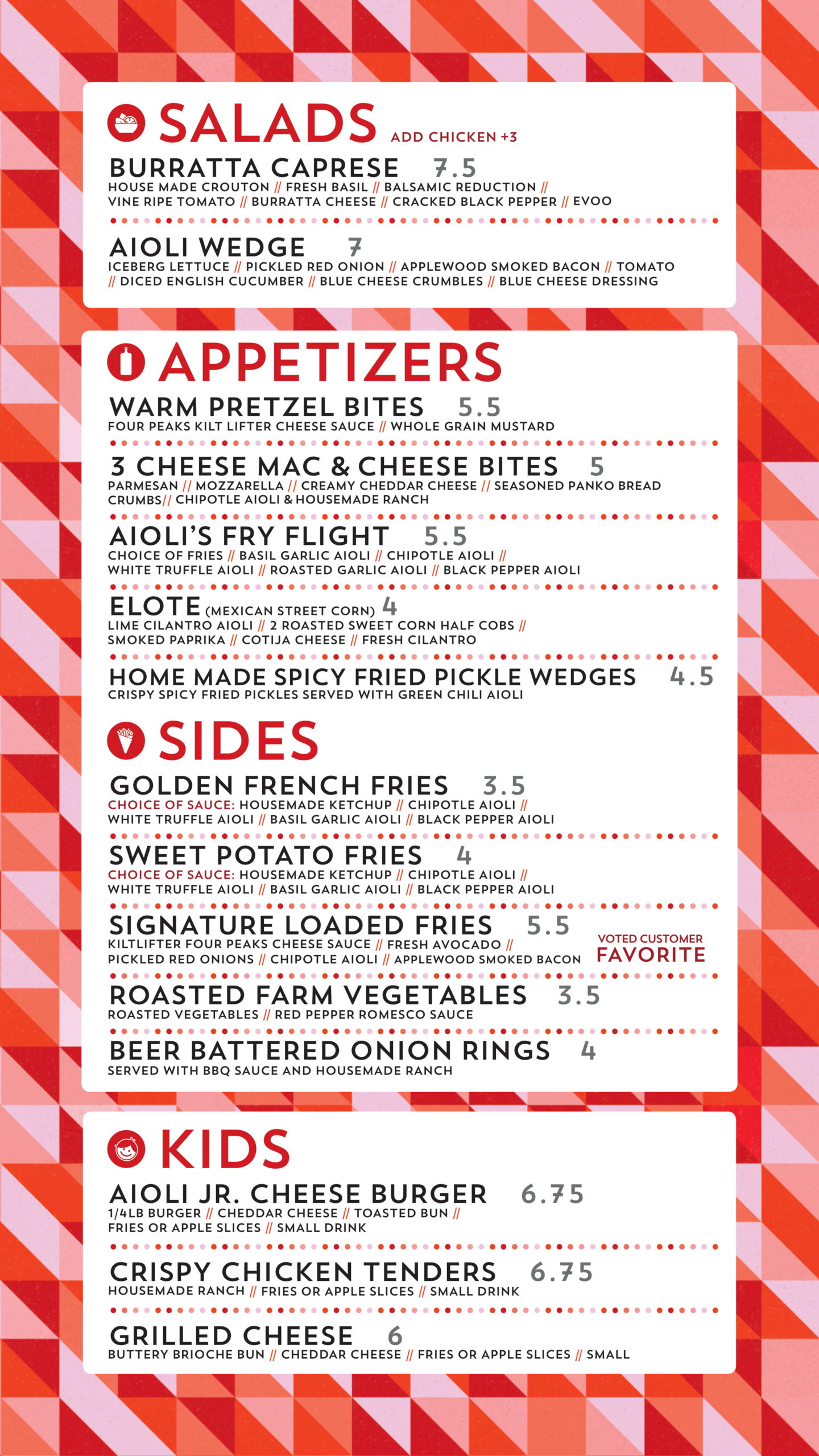 This location is close to our hearts because it’s in the heart of Phoenix where our story started, and where our dream of a brick-and-mortar store was brought into reality. With a bright and modern interior and the best burgers in town, this location can’t be beat, whether you’re looking for places to eat in North Phoenix after a hike at Piestewa Peak for or for a casual date night. Visitors to this store will find the same unbelievable quality they’ve come to expect from Aioli Burger, from appetizers to our house made beverages—all with the easy convenience of an accessible store!